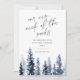 Die elegante Woodsy-Ankündigung ist mit einer Menge großer Aquarellkiefern in schimmernden Blautönen gestaltet. "Unser neuer Hals des Waldes" erscheint oben in handgeschriebenen Schriftzeichen. Personalisieren Sie Ihre neue Adresse und Ihren Familiennamen. Eine schicke, bewegende Ankündigung für Wohnungen in Berg- oder Waldlandschaften.