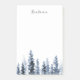 Rustikale, schicke personalisierte Noten mit einem Wald von immergrünen Kiefern in reichen Schattierungen von Winterblau. Personalisieren Sie Ihre Daten mit Namen, Monogramm, Firmennamen oder Text Ihrer Wahl.