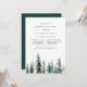 Das elegante Abendessen in der Probe lädt mit einer Reihe von Aquarellkiefern in den Schattierungen Jäger und Waldgrün zum Verweilen ein. Personalisieren Sie Ihre Zeremonie mit Probe und Abendessen oder feiern Sie Details in schicken, schwarzen Buchstaben. Eine schöne Wahl für elegante Proben in Berg-, Wald- oder Waldlandschaften.