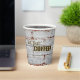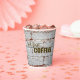 Der lustige Satz, den Kaffee liebt Liebe. "Aber zuerst... KAFFEE!" Dieses skurrile Design besticht durch eine frische Tasse heißen Kaffees auf einem Backstein-Hintergrund.