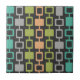 Ein schlichtes minimalistisches Muster, das durch die abstrakte Kunst der 1950er Jahre inspiriert wurde, mit Säulen aus abgerundeten Quadraten in Orange, Chartreuse grün, Türkis und Grau.