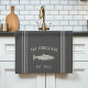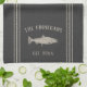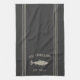 Mit diesem niedlichen personalisierten Handtuch mit Familienname oder Hausnamen und Jahr, das in sanfter Bräunung mit einer Fischillustrierung auf kohlegrauem Hintergrund eingerichtet ist, können Sie Ihre Küche individuell gestalten.