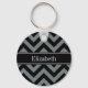 Holzkohle, Schwarz-LG-Zickzack-Schwarz-Name-Monogr Schlüsselanhänger