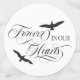 Vogelgezwitscherte Beerdigungstischkonfetti in Holzkohle grau und weiß mit steilen Vögeln, die Forever in unseren Herzen in schön Wirblen Schriftart. Personalisieren Sie die Gedenktafel Konfetti mit zwei Fotos Ihrer geliebten, ihre Initialen, und Jahre leben.