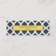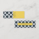 Holzkohle, weißes und gelbes Quatrefolienmuster Mini Visitenkarte