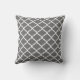 Elegantes und hoch entwickeltes dekoratives Kissen im dunkelgrauen und weißen marokkanischen quatrefoil Gittermuster.
