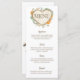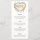 Fügen Sie Ihrer Hochzeit eine besondere Touch mit diesem Menü hinzu. Die skinny Menükarte bietet gemütliche Holzlandabbildungen und ist bereit, auf Ihre Beschreibung von Geschirr in brauner Schrift zugeschnitten zu werden.