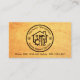 Ein aus Holz bestehendes Cover verfügt über ein handliches Zuhause-Werkzeug, bei dem der Kreis durch zwei Kopfschrauben abgerollt wird. Oben oben im Kreis steht Ihr angesehener Name mit dem Firmennamen unten. Kontaktinformationen finden Sie in der Nähe der Kartenbasis. Über dem Blatt wird das gleiche Holzmotiv mit einem goldenen Hammer-Logo verwendet, das Sie oben verwenden können. Darauf folgen Ihr Name, Ihre Kontaktdaten und ein Slogan zur Bekanntmachung Ihres Unternehmens. Eine großartige Karte für Handwerker, Gebäude oder Bauunternehmen.