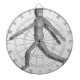 Hölzernes männliches Mannequin mit gewölbten Linien unterschiedlicher Breite, die das Bild erzeugen. Originelles Design in Schwarz und Weiß.