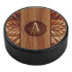 Ein prächtiges Design mit einem schlichten Holzband im Zentrum, umgeben von einem dreieckigen, abgerundeten Muster aus geschnitztem Holz mit kontrastierenden Holztönen. In der Mitte wird Ihr Monogramm in einem Kreis mit prächtigen, miteinander verflochtenen Buchstaben dargestellt, als ob es im Holz graviert wäre. Dieses raffinierte Accessoire wird Ihre Hockeyausrüstung mit einer schicken dekorativen Touch ergänzen.