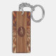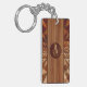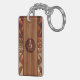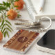 Ein prächtiges Design mit einem schlichten Holzband im Zentrum, umgeben von einem dreieckigen, abgerundeten Muster aus geschnitztem Holz mit kontrastierenden Holztönen. In der Mitte wird Ihr Monogramm in einem Kreis mit prächtigen, miteinander verflochtenen Buchstaben dargestellt, als ob es im Holz graviert wäre. Sehr raffiniertes Accessoire, dieser Schlüsselanhänger wird Ihrem Stil eine schicke dekorative Touch hinzufügen.