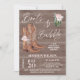 Rustikales Holz Rosa Blumenstiefel und Bubbly Bridal Duschladen und Brautdusche mit Kakteen, Cowgirl Stiefeln und einigen rosa Blumenarrangements auf einem Imitat Holzbilderhintergrund. Diese Boots- und Bubbly Bridals Duscheinladung enthält auch einige nicht bearbeitbare moderne Kalligrafiettexte und Textteiler.