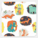 Das Muster zeigt eine Sammlung von Holzschnitzereien, die in einem bunten Stil der Volkskunst erschaffen wurden.