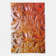 Ein holzgetreiftes Schnittholz mit einer Kirsche bis leicht Eichenfarbe. Es hat ein dekoratives abstraktes Design. Auch ähnelt gefertigtem Leder mit Prägung.