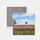 Ein schöner Morgen beim Schuhfestival in Woodburn, Oregon. Farbenfrohe Tulpen füllen das Feld mit einem Heißluftballon in der Ferne. Foto wurde im April 2022 aufgenommen.