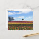 Ein schöner Morgen beim Schuhfestival in Woodburn, Oregon. Farbenfrohe Tulpen füllen das Feld mit einem Heißluftballon in der Ferne. Foto wurde im April 2022 aufgenommen.