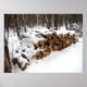 Winterlandschaft eines schneebedeckten Holzstapels im Wald