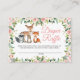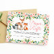 Nutzen Sie diese Einladungskarten, um die Gäste der Babydusche einzuladen, ein Paket Windeln mitzubringen, um einen Preis bei der Dusche zu gewinnen. Das schicke Design umfasst ein Aquarelltier, die rot-rosa Blume und den Platz, den die Gäste bei der Einsendung ihres Gewinnspielscheins angeben können. Entworfen, um unsere Kollektion von Woodland Tieren und Blush Pink Blume zu ergänzen.