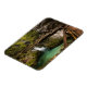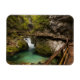 Der rechteckige Foto-Magnet mit dem hölzernen Gang über die Bewegung verwischte Wasser durch den schmalen Schluchten der Vintgar-Schlucht, der in die Berge um den Bled-See in Slowenien eingemeißelt wurde.
