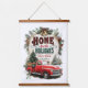 Celebrate the joy of togetherness with this heartwarming Christmas artwork featuring a vintage red pickup truck loaded with presents and a freshly cut tree. Nestled in a snowy pine forest and adorned with festive touches—bells, holly, and pinecones—the scene radiates rustic charm and seasonal cheer. The welcoming message Home for the Holidays – Family & Friends Welcome captures the spirit of reunion and celebration, making this illustration a timeless tribute to the warmth and magic of the holiday season.