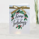 Celebrate the warmth of the season with this elegant 'Home for the Holidays' greeting card. Featuring festive holly leaves, red berries, and pine branches surrounding the heartfelt message, this card captures the joy of gathering with loved ones. A golden ribbon bow at the top adds a touch of sparkle, making it a perfect way to share holiday cheer.