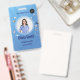 Easily personalize this blue professional healthcare employee photo ID pink badge with your custom details.