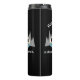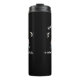 Camper themed hot or cold liquids water bottle with inspirational slogan "Home is where you park it", which can be edited to your own words. Printed with an image of a cute little teardrop style travel trailer against gray abstract mountains, moon and stars.
