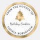 Gold Border und Weihnachtsbaum "From the Kitchen of" Personalisiert Classic Round Product Aufkleber für hausgemachte Vorräte oder Backwaren... Machen Sie in diesem Jahr hausgemachte Backwaren oder Marmelade für Urlaubsgeschenke? Unser Geschenkaufkleber/-etikett zeigt eine elegante goldene Folie rund um den Text: "From the Kitchen of" und "Your Name". Sie können Ihren Namen und den Produktnamen auf der Personalisierungsvorlage leicht ändern.