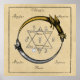 Homer's Drachen ouroboros Symbol mit einem geflügelten Drachen und Schlange beißen sich gegenseitig den Schwanz, ein magisches Symbol der gegensätzlichen silber- und goldenen Kräfte, die dazu genutzt werden, Blei in Gold umzuwandeln. Alchimiesigils für Schwefel und Merkur ☿ werden im Zentrum des David-Sterns mit Sonne-, Mond- und Planetensymbolen gezeigt. Gedruckt in "The Golden Chain of Homer, or A Description of Nature and Natural Things" (1723). © dotpattern