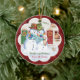 Für Bruder und Partner lächeln 2 homosexuelle Schneemänner, die Zylinder und Regenbogen-farbige Schals tragen, vernarrt an einander, während sie singen vor einer roten und grünen Tür singen. Ein trägt eine Laterne und die andere ein Lied Songbook. Diese niedliche Weihnachtsverzierung kann mit Namen und Datum an der Front und Ihrem eigenen speziellen Gruß auf der Rückseite personalisiert sein.