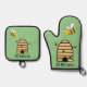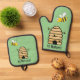 Honey Bee & Hive Design Oven Mitt & Pot Hol Ofenhandschuh & Topflappen-Set