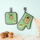 Honigbiene und Bienendesign Oven Mitt und Pot Holder Set mit anpassbarer Hintergrundfarbe und Text.