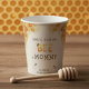 Welcome your bundle of joy in style with these adorable She's Gonna BEE a Mommy baby shower paper cups. Designed with a yummy honeycomb and bumblebees over an ivory hue, this watercolor cup is perfect for serving drinks and getting guests buzzing about the soon to be mom. It's gender neutral, so it works for a baby boy or girl. Personalize it with your party details for an event that will be as sweet as can bee!