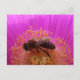Honigbiene Postkarte, die Pollen aus einer rosa Blume sammelt.