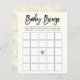 Elegantes Signaturskript "Baby Bingo" Grafik, Baby Dusche Spielblatt. Niedliche Honigbiene und goldene Wabenmuster.