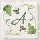 Honey Bees Green Leaf Custom Monogram Steinuntersetzer