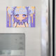 Honey drip kawaii chibi girl with icy blue twin-tails and lavender bows, topped with glossy golden drips and tiny heart splashes. Big sparkling eyes and a soft blush give it a sweet, dreamy mood. A playful pastel pop look that stands out on a bold purple background.