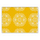 Dieses weiße Mandala sitzt auf einem honiggelben Hintergrund. Die Farben sind warm und friedlich. Teil der Rosenn Mandala Kollektion.