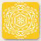 Dieses weiße Mandala sitzt auf einem honiggelben Hintergrund. Die Farben sind warm und friedlich. Teil der Pympbys Mandala Kollektion.