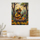 Dieses fantasievolle Kunstwerk zeigt einen Bären, der als Feuerwehrmann gekleidet ist, einen Helm und eine Sonnenbrille, in einem großen Vogelnest sitzend und eine akustische Gitarre spielt. Zwei Bienen schweben in der Nähe, und ein Glas Honig sitzt im Nest. Der Hintergrund ist ein lebendiger, grüner Wald, in dem unten mutig "Liebe mein Honig" dargestellt wird. Die dicken, strukturierten Pinselstriche verleihen der Szene ein charmantes und herzliches Gefühl.