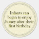 Honigkartentelefon für Säuglinge unter 12 Monaten empfohlen, Honig bis zum ersten Geburtstag zu meiden. Passen Sie den Text für jeden Zweck auf quadratischen oder runden Aufklebern auf der Oberseite oder Seite von Gläser und anderen Honigbehältern an. Finden Sie weitere Aufkleber für Honiggranulation und Nährwertangaben in der Sammlung. © dottern