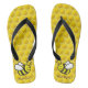 Lächelnder Cartoon über nahtlosen Bienenstock-Hintergrund. Benutzerdefinierter Text auf jedem Sandal.