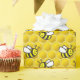 Lächelnder Cartoon über nahtlosen Bienenstock-Hintergrund.