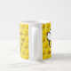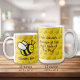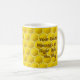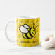 Lächelnder Cartoon über nahtlosen Bienenstock-Hintergrund. Benutzerdefinierter Text auf beiden Seiten.