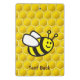 Lächelnder Cartoon über nahtlosen Bienenstock-Hintergrund.