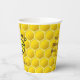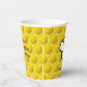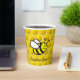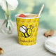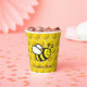 Lächelnder Cartoon über nahtlosen Bienenstock-Hintergrund. Benutzerdefinierter Text auf beiden Seiten.