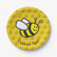 Lächelnder Cartoon über nahtlosen Bienenstock-Hintergrund.