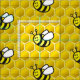 Lächelnder Cartoon über nahtlosen Bienenstock-Hintergrund.