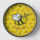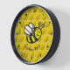 Lächelnder Cartoon über nahtlosen Bienenstock-Hintergrund. Eigener Text.