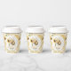 This honeycomb baby shower paper cup features a cute bee with a sunflower surrounded by floral elements and bees. The warm and playful design makes it a perfect personalized party item.